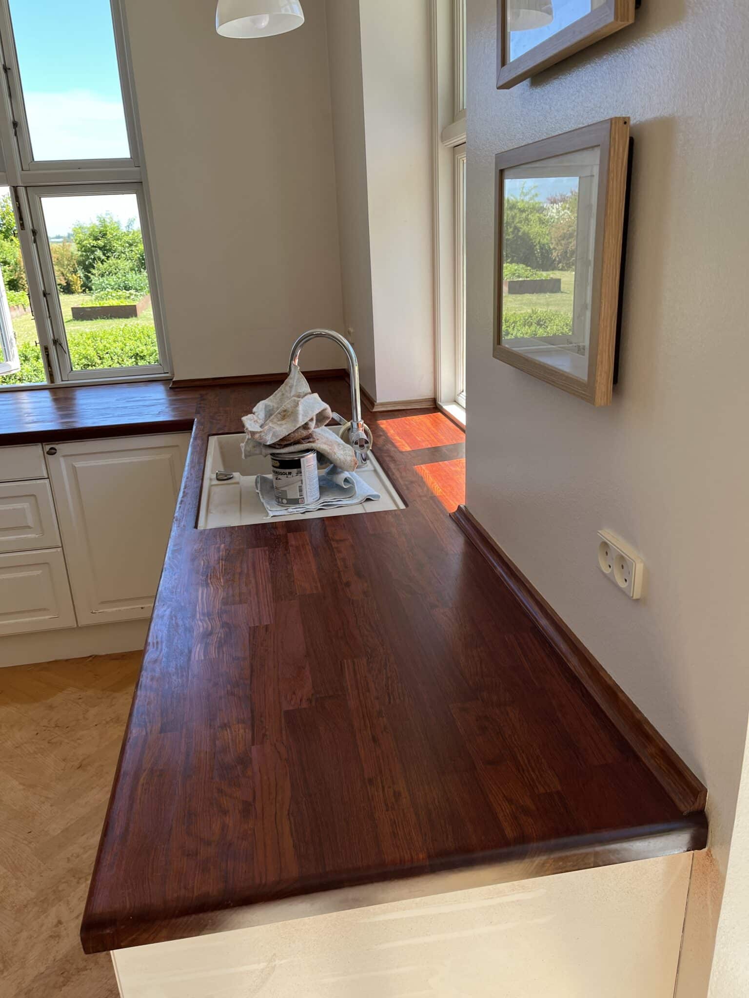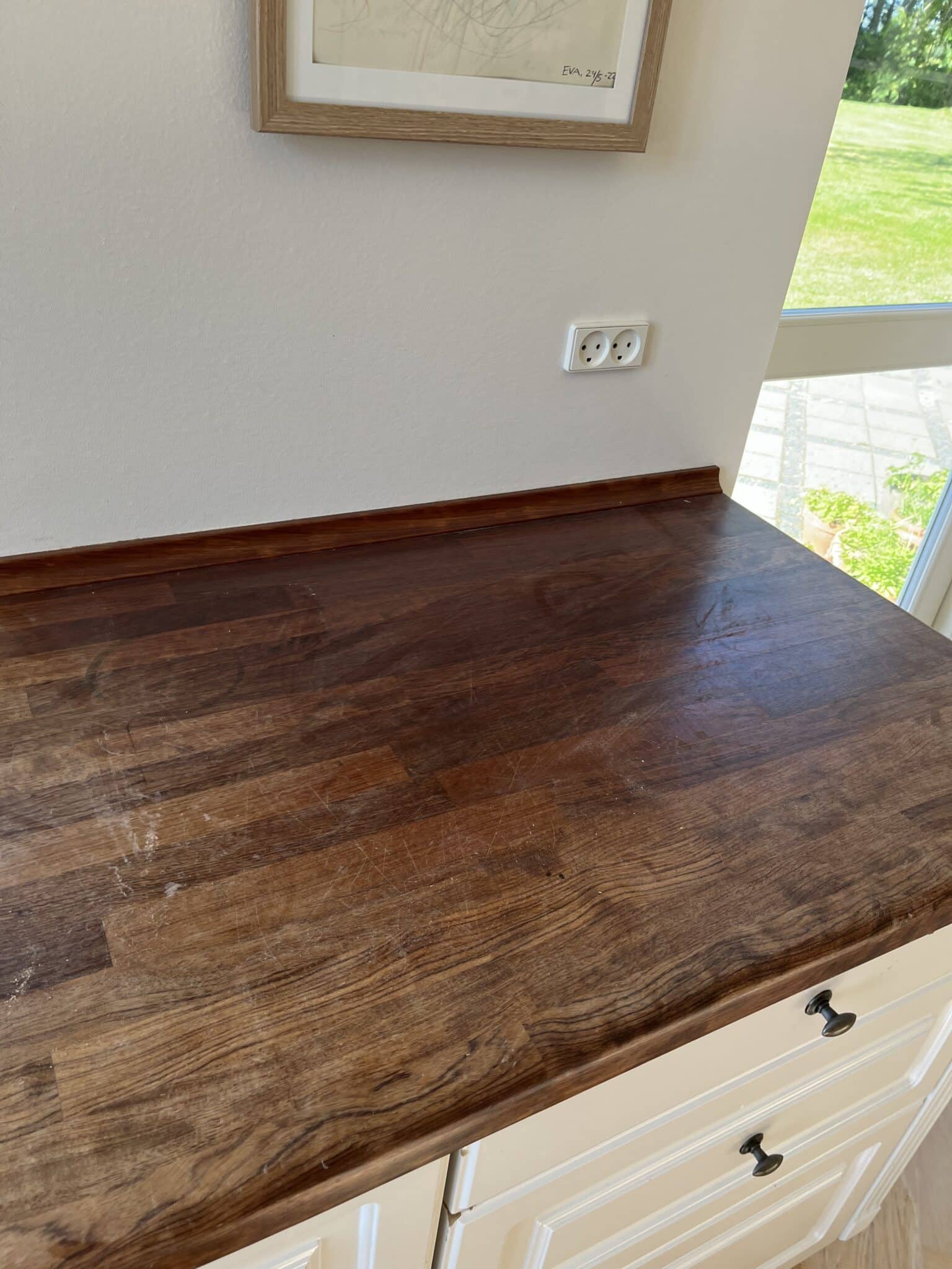 • Slibning af bordplade i corian – giver en jævn, silkemat overflade uden synlige samlinger.
